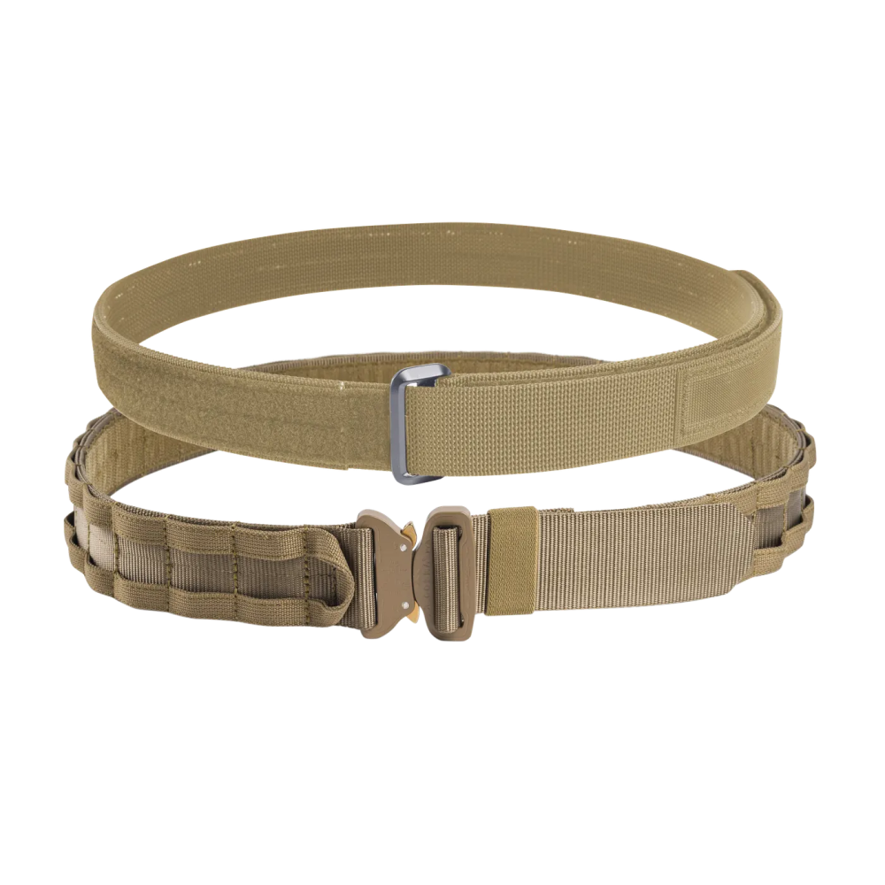 مصمم خصيصًا للاحتياجات العملية للرماة. حزام داخلي مريح مُثبت بـ Velcro للحركة الآمنة، والحزام الخارجي بقطع تثبيت لحوامل المسدسات والحقائب، مع مشبك AustriAlpin® Cobra® لقفل قوي وقابل