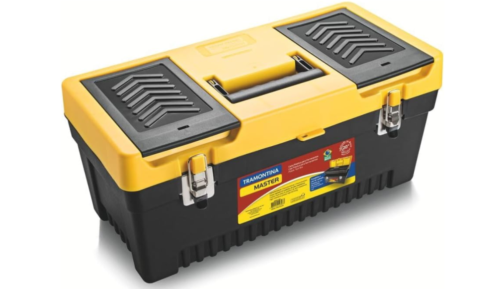 • صندوق أدوات بلاستيكي من Tramontina MASTER بغطاء منظم.