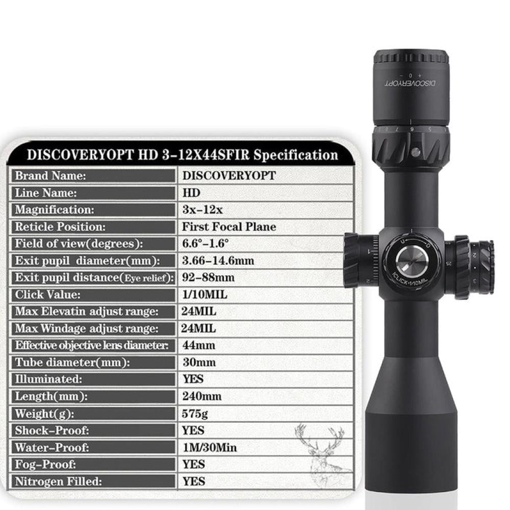 The Discovery HD 3-12×44 SFIR FFP is an HD (High Definition) riflescope that combines excellent image focusing and a large lens to provide superior clarity in a variety of shooting conditions.